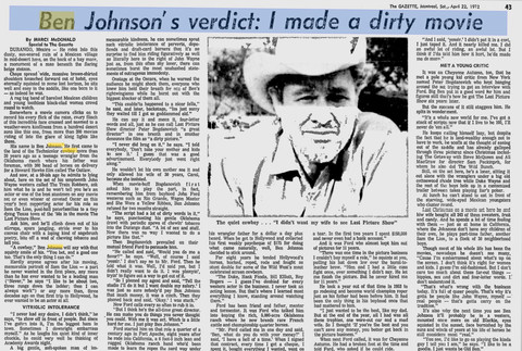 An interview with Ben in the September 28, 1973 Pittsburgh Press, publicizing his new TV-movie Runaway!