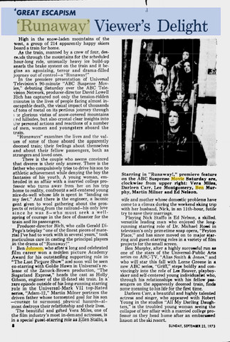 Review of the TV movie Runaway! in the September 23, 1973 Oxnard, California Press-Courier newspaper.