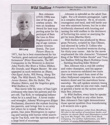 A review of Wild Stallion by Bill Levy, author of Lest We Forget: The John Ford Stock Company, in his